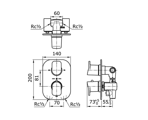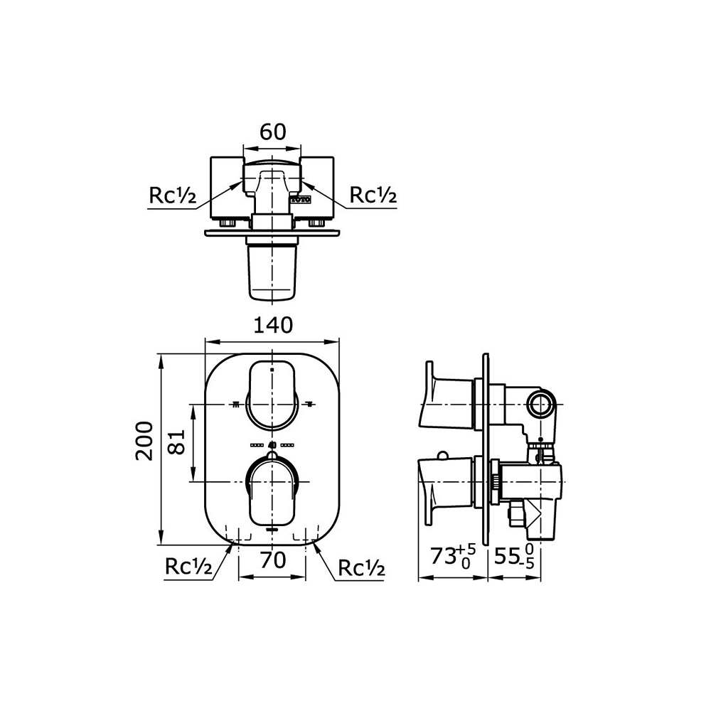 Thermostat Bath & Shower Mixer With Diverter & Stop Valve